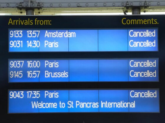 But on its website, shortly before 9:00 (8:00 GMT) it reported that the second train of the day would arrive in London with around 40 minutes late and the third with around half an hour.