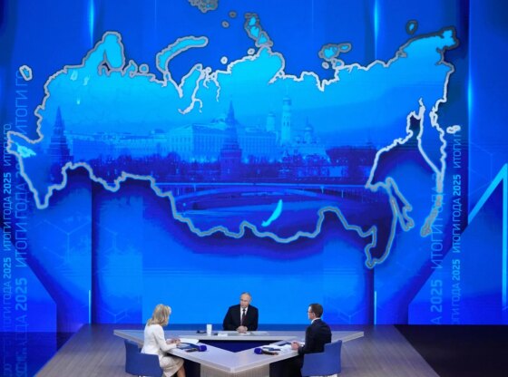 Sarcastic messages briefly flashed up on a big screen in the hall where Putin was holding his annual press conference and “direct line” phone-in.