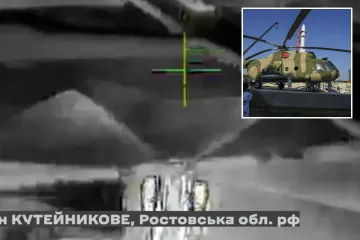 Moment Ukrainian deep strike drone shoots down Russian helicopter