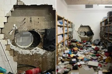 Once inside the vault, the thieves emptied as many safe deposit boxes as they could before escaping through the hole they had created.