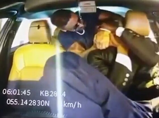 The clip, recorded by the car’s dashcam, shows the passenger groping the driver before violently assaulting him.