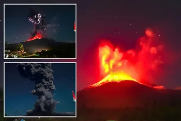 Huge volcanic eruption sends ash 6 miles high & poisonous gas toward villages