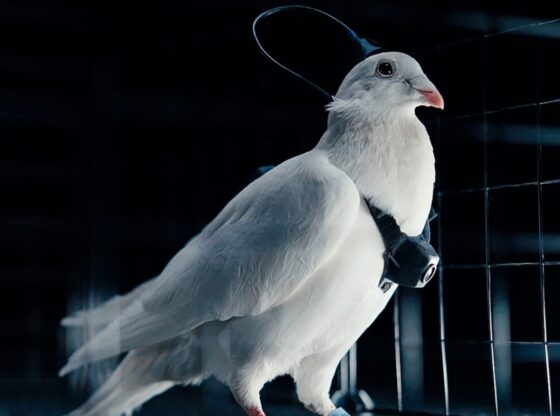 “The pigeon’s brain contains electrodes connected to a stimulator and located in the backpack on the bird’s back.