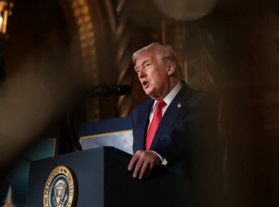 Even before the Republican president’s appearance on stage, escorted by Rubio, Hegseth and Phelan, several posters on both sides of the lectern showed images of a warship with the words “Trump Class USS Defiant.”